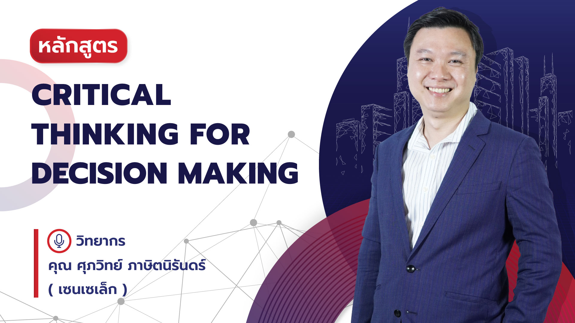 สำหรับหลักสูตร Critical thinking for decision making ผู้เรียนจะได้รับการถ่ายทอดความรู้จาก Master Trainer ที่เป็นสุดยอดของนักคิด นักเขียน และวิทยากรที่มีประสบการณ์กว่า 19 ปีในองค์กรธุรกิจที่เป็นผู้นำด้านเทคโนโลยียานยนต์จากญี่ปุ่น และประสบการณ์อีก 2 ปีในการทำงานที่ประเทศญี่ปุ่น คุณศุภวิทย์ ภาษิตนิรันดร์ หรือ เซนเซเล็ก สามารถสื่อสารเรื่องยากให้เข้าใจได้ง่าย สรุปเรื่องราวให้สั้น กระชับ ตรงประเด็นลงในกระดาษเพียงแผ่นเดียว จึงมั่นใจได้ว่าคุณภาพครบในทุกเนื้อหา พร้อมตัวอย่างที่สามารถนำไปใช้ในการทำงานให้เกิดผลลัพธ์ได้จริงในองค์กร
